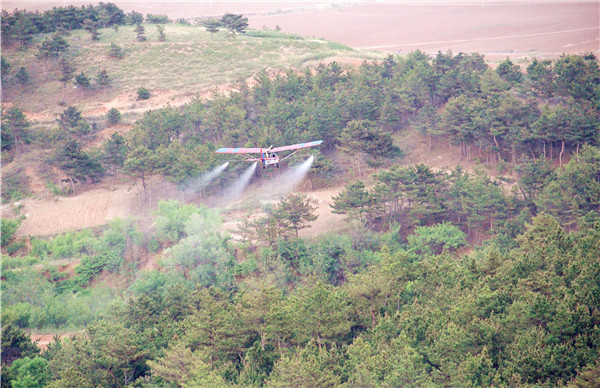 通遼市神鷹通用航空有限公司在朝陽市進(jìn)行2018年松毛蟲飛防項目。